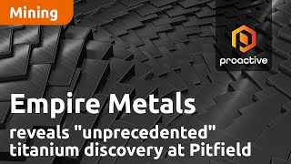 Empire Metals Ltd managing director Shaun Bunn talked with Proactive about recent strategic moves aimed at accelerating the Pitfield titanium project in Western Australia. The company has appointed Michael Tamlin as marketing manager and extended its partnership with US-based titanium consultancy TiPMC.