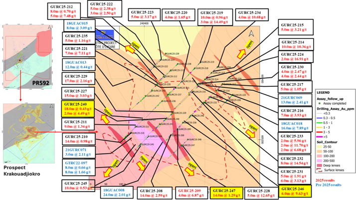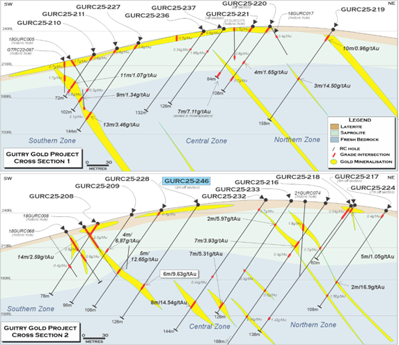 · Drillhole GURC25-246 - 6m at 9.63 grammes per tonne ("g/t") of gold ("Au") from 89m