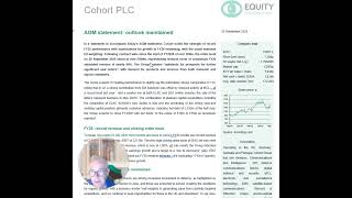 Cohort’s final results came in ahead of our forecasts with a record revenue, adjusted operating profit and closing cash performance delivered. The 22% underlying organic revenue growth and 17% underlying operating profit growth was augmented by the MCL and J+S acquisitions, both of which were immediately earnings enhancing. With a closing order book of £134.0m, including a contribution of £38.0m from the acquisitions, we believe Cohort is set for a period of sustained organic growth. In addition, a significant outperformance on cash, some of which is expected to partially reverse in FY16, leaves the group with a very strong balance sheet to pursue further targeted acquisitions and deliver organic growth.