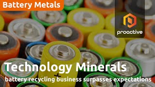 Technology Minerals PLC (LSE:TM1) (Technology Minerals PLC (LSE:TM1)) Robin Brundle joins Proactive London's Katie Pilbeam about their 49% owned Recyclus Group signing a deal with Slicker Recycling to collect battery waste from around the UK and deliver it to its plants.